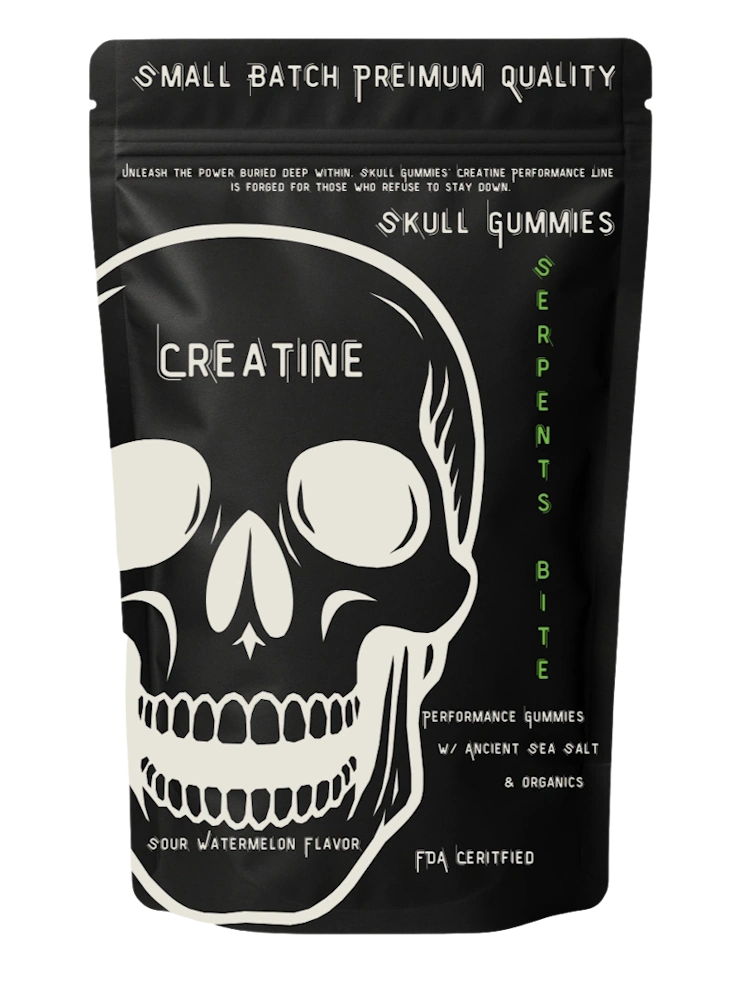 Strike with precision. Serpent’s Bite unleashes a fierce sour watermelon flavor wrapped around high-quality creatine and ancient sea salts for enhanced strength, power, and absorption. Sharp, tangy, and dangerously effective—this gummy is engineered for athletes ready to shed limits. Coil. Strike. Raise the Dead.