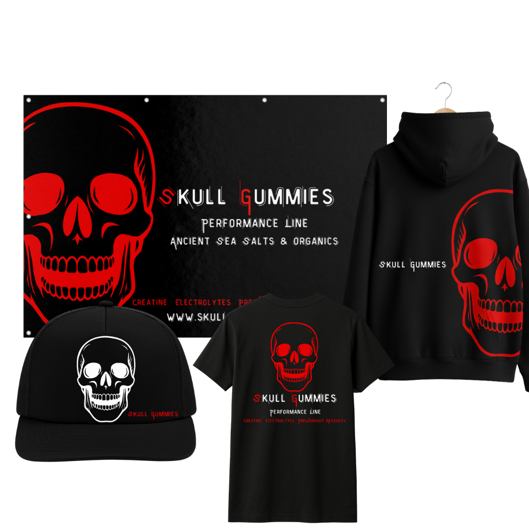 Skull Gummies Performance Gummies are built for those who demand more from their body and mind. Each formula supports real performance benefits—strength, endurance, hydration, recovery, and focus—using premium ingredients and ancient sea salts to help optimize absorption. Easy to take and made in small batches, they fit seamlessly into your daily ritual without the mess or guesswork of powders. This isn’t a trend—it’s a resurrection of how performance nutrition should feel.